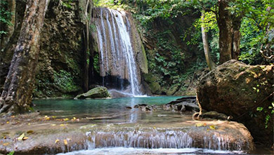 L’Ang Khin Waterfall is located in Pouyam Village, Sen Monorom Commune, Oreang District; 26 km away from the provincial town. It can be accessed by path.Around the waterfall, most of the residents do farming. During the rainy season, the waterfall is 22-25 meters in height and 7-10 meters in diameter. During the dry season, the waterfall is 28 meters in height and 8 meters in diameter. It is one of the highest flowing-down waterfalls in the Mondul Kiri province. At its base, there is a big water reservoir in which tourists can swim happily. Besides, there are many big trees providing cool shade for them. Its main points of interest are a spectacular waterfall, dramatic mountainous forest, impressive undulating hills, and fresh air.