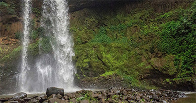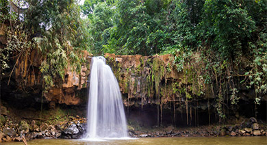 L’Ang Khin Waterfall is located in Pouyam Village, Sen Monorom Commune, Oreang District; 26 km away from the provincial town. It can be accessed by path.Around the waterfall, most of the residents do farming. During the rainy season, the waterfall is 22-25 meters in height and 7-10 meters in diameter. During the dry season, the waterfall is 28 meters in height and 8 meters in diameter. It is one of the highest flowing-down waterfalls in the Mondul Kiri province. At its base, there is a big water reservoir in which tourists can swim happily. Besides, there are many big trees providing cool shade for them. Its main points of interest are a spectacular waterfall, dramatic mountainous forest, impressive undulating hills, and fresh air.