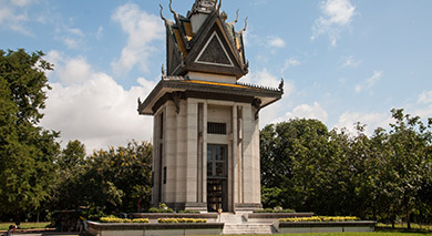 Choeung Ek is the site of a former orchard and mass grave of victims of the Khmer Rouge – killed between 1975 and 1979 – in Dangkao Section, Phnom Penh, Cambodia, about 17 kilometres (11 mi) south of the Phnom Penh city centre. It is the best-known of the sites known as The Killing Fields, where the Khmer Rouge regime executed over one million people between 1975 and 1979.